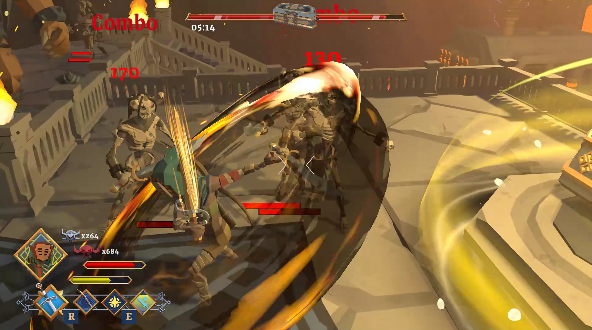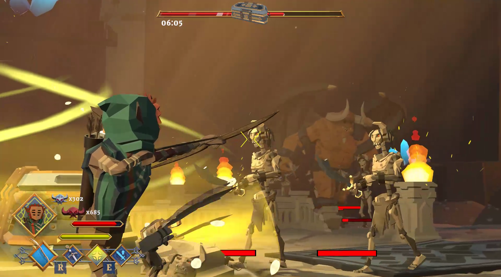 The goal in Raidland II is to protect the chest for the longest time without dying. You can make upgrades with the skeletons and demons you kill! There are 4 types of enemies in the game;
